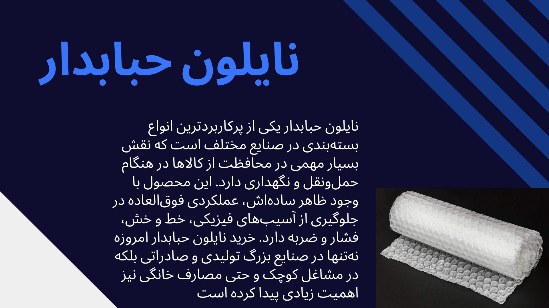 آیا تا به حال برای شما پیش آمده است که پس از خرید یک وسیله الکترونیکی گرانقیمت یا یک ظرف چینی ارزشمند و جابجایی آن، با صحنه دلخراش شکستگی و خسارت مواجه شوید؟ یا شاید به عنوان یک تولیدکننده یا صاحب کسبوکار، هزینههای سنگین ناشی از مرجوعی کالاهای آسیبدیده در حین حمل و نقل، سود شما را تحت تأثیر قرار داده است. مسئله محافظت از کالاها در برابر ضربه، فشار، لرزش و رطوبت، یکی از دغدغههای اصلی در زنجیره تأمین، از تولیدکننده گرفته تا مصرفکننده نهایی است. در دنیای پرشتاب تجارت امروز، بسته بندی مناسب دیگر یک انتخاب نیست، بلکه یک ضرورت انکارناپذیر برای بقا و رقابت در بازار محسوب میشود. انتخاب یک ماده بسته بندی کارآمد که بتواند با حداقل هزینه، حداکثر ایمنی را برای محصولات شما فراهم کند، میتواند تفاوت بین یک مشتری راضی و یک تجربه تلخ را رقم بزند. اهمیت این موضوع زمانی بیشتر نمایان میشود که بدانیم بسیاری از کالاها، بهویژه در مسیرهای طولانی حمل و نقل یا انبارداری، در معرض خطرات متعددی هستند که بدون یک محافظ مناسب، خسارات جبرانناپذیری به بار میآورند. در این راهنمای جامع و تخصصی، قصد داریم شما را با یکی از مؤثرترین و پرکاربردترین مواد بسته بندی یعنی نایلون حبابدار آشنا کنیم. از تعریف و تاریخچه آن گرفته تا معرفی انواع مختلف، بررسی مزایای بینظیر، نکات کلیدی برای خرید هوشمندانه و مراحل گامبهگام استفاده صحیح از آن، همه و همه در این مقاله پوشش داده خواهد شد تا با آگاهی کامل، بهترین انتخاب را برای نیازهای بسته بندی خود داشته باشید.